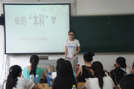 邢汝男同学为在校生做了“我的本科梦”的经验交流,她从当前我省现开设专升本的院校、我校专升本考试通过的情况、报考专升本的方法、报考的注意事项以及专升本的意义等方面,认真仔细的给在校生进行了说明,为大家点出了复习重点,介绍了应试技巧和学习方法,让大家对专升本考试有了更加直观的认识,得到了同学们的高度赞可。