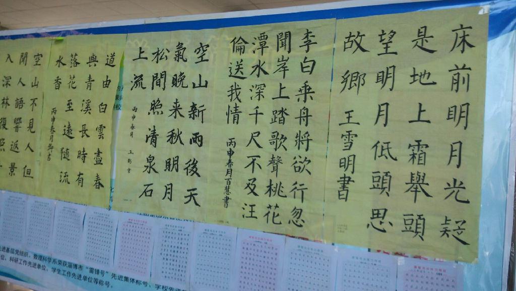 为了加强社团建设,发挥社团育人功能,由校社团联合会主办,我系博雅文苑等社团承办的学校首届社团节书法大赛于5月19号在1号教学楼大厅举行。