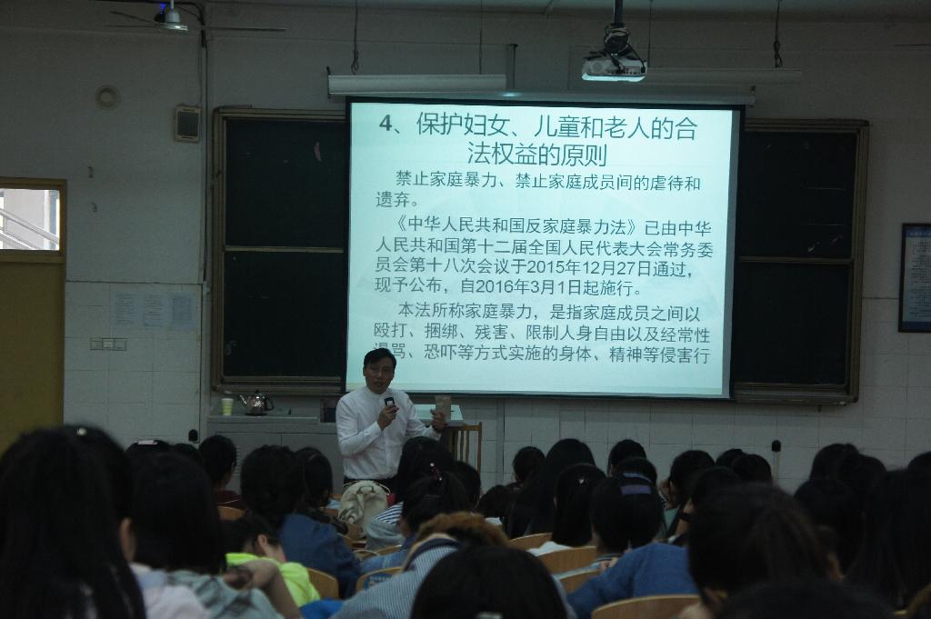 为强化大学生法律意识,提高大学生的自我保护能力, 4月11日下午,学前教育学院邀请学校法律顾问齐元军老师作“女生权益保护”法制报告,报告由学院党总支副书记主持。