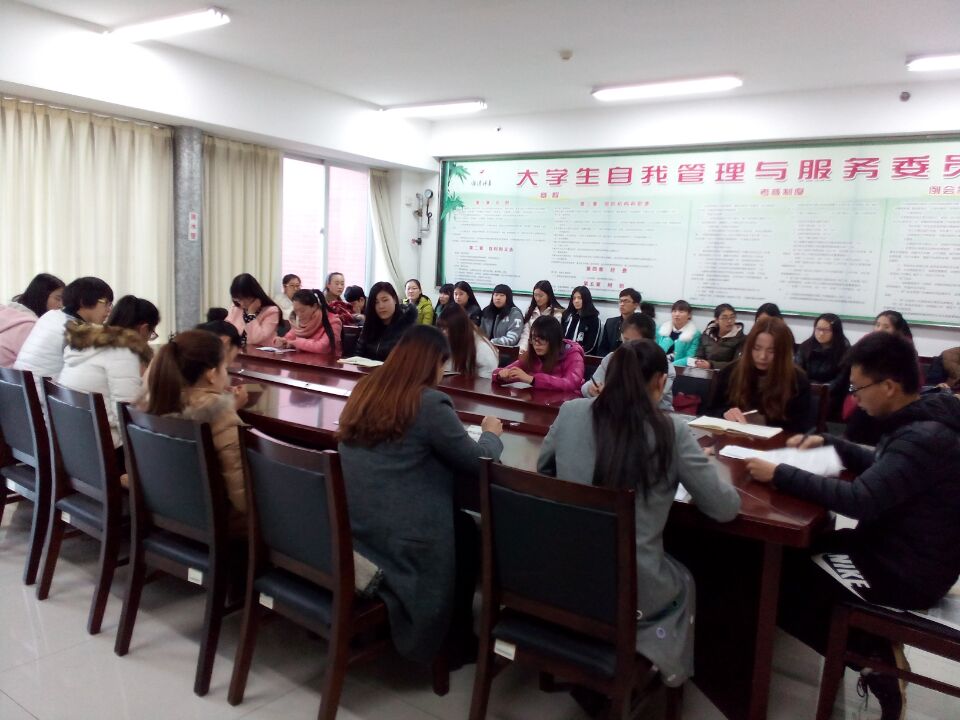 大学生自管会期末总结大会于2015年12月16日在大学生活动中心召开。2015届自管会全体成员参加此次会议。