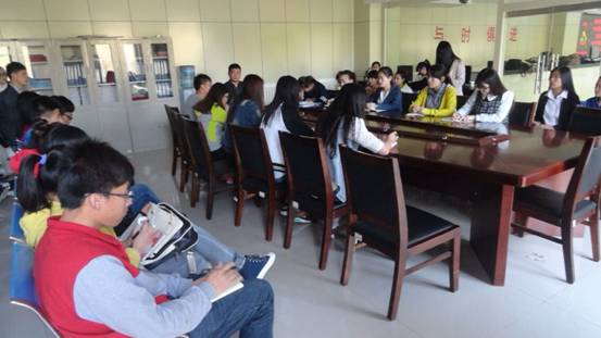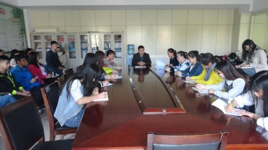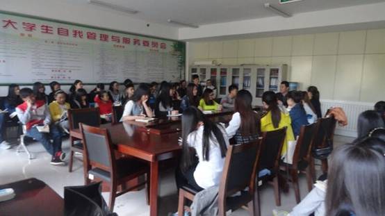 4月16日下午,2015届自管会在大学生事务服务中心召开全体成员见面会。学生处徐老师、自管会全体成员参加了会议。