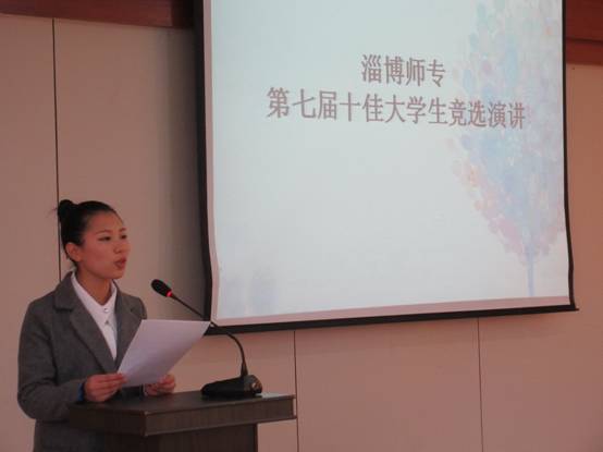 12月11日下午,淄博师专第七届十佳大学生竞选演讲在行政楼301会议室成功举办。来自全校7个院系的14名候选人进行了精彩的演讲,学校奖助学金评审小组成员和80名学生代表参加了本次竞选演讲活动。