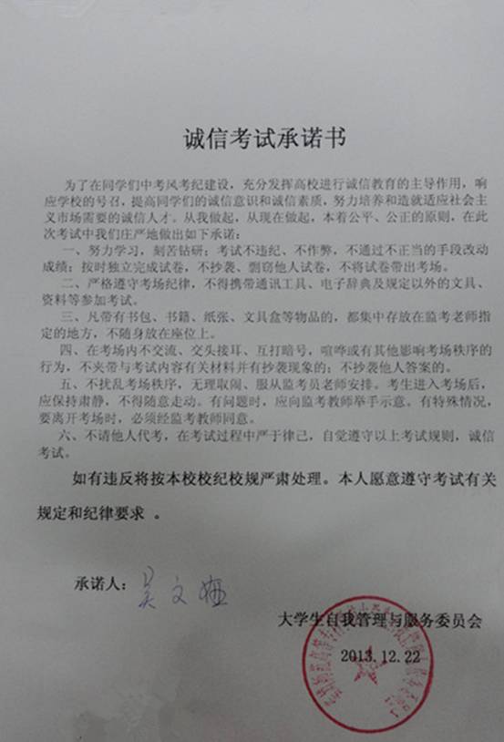 临近期末,又恰逢冬至日。为了增强学生们在考试中的自律意识,帮助学生更好的面对考试,同时也让同学们在紧张的复习中放松一下心情。校自管会特在12月22日上午9时举办了“温暖度冬至,诚信我先行”的活动。