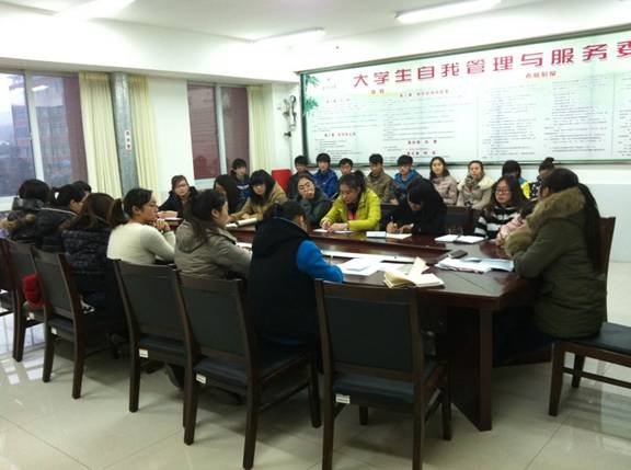 12月20日下午课外活动,大学生自我管理与服务委员会在大学生事务服务中心(自管会办公室)召开了欢迎自管会见习干事见面会,会议由自管会主席团与部分见习干事成员参加。
