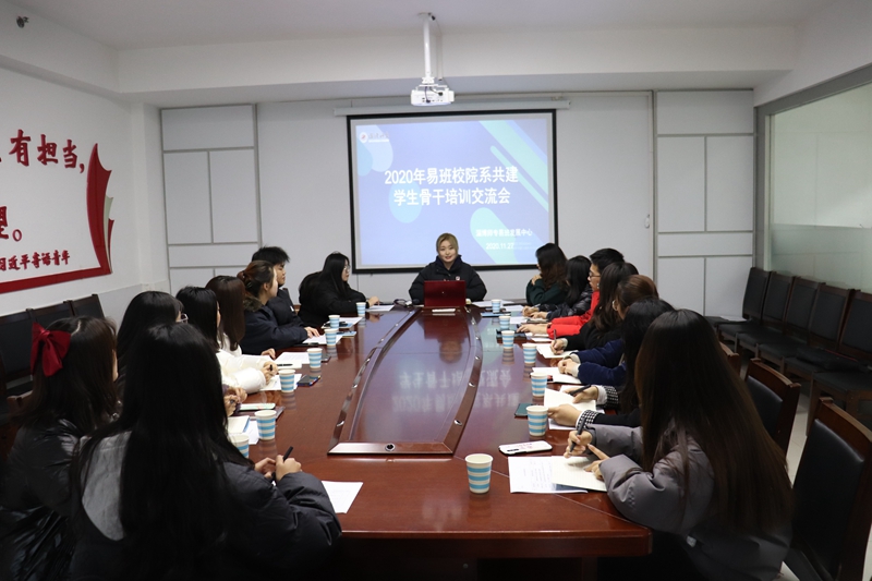 图为:11月27日,易班学生骨干在大学生活动中心会议室进行业务能力培训交流会。
