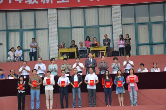 9月12日上午,淄博师专2014级新生军训总结汇报大会暨开学典礼在学校运动场隆重举行,学校党委书记王维华、校长王久亮、71345部队政治部副主任李少卿、副校长秦克铸、副校长周巧玲、副校长郭小文、学校相关部门负责人和各院系负责人出席大会。