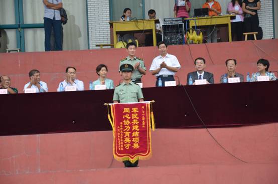 最后,王维华书记还代表学校向71345部队赠送了锦旗,学生代表向教官送上鲜花,表达了对全体承训教官的感谢和崇高的敬意!