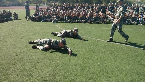 尽管烈日当空,师专学子的训练热情不减,精神抖擞的参加到各个训练项目当中。炎热的天气对训练也造成了一些影响,有的学生身体素质弱病倒了,但凭着顽强的意志,稍有好转便坚持训练。教官仔细的教,学生认真的学,整个训练场上口号嘹亮,步伐整齐,口令准确,令行禁止。