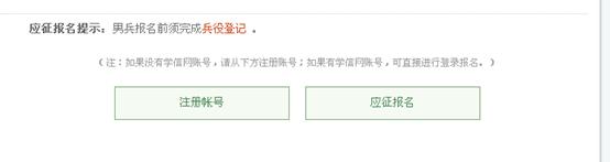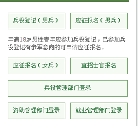2、注册成功后,点击上图中红圈标示的征兵报名链接,进入下图位置。根据自己情况点击应征报名(男兵)或者应征报名(女兵)