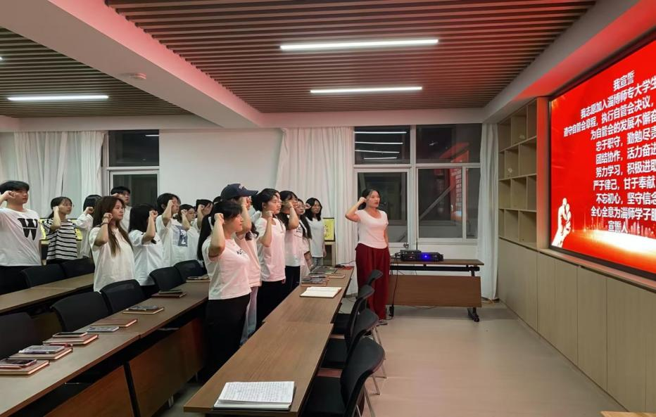 最后,2024届自管会全体成员进行了宣誓活动。在庄严的宣誓中,自管会成员们更加清晰地铭记了自己的职责与使命,在今后的日子里,将以更加坚定的步伐,秉持着服务的初心,为同学们提供更为贴心的帮助与关怀。
