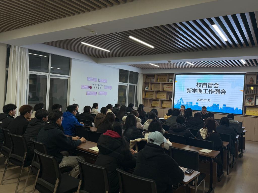 2月21日晚上,校自管会在“一站式”学生社区多功能活动室召开新学期工作例会,学生处宋宁和宋元盛老师及2024届自管会全体成员参加本次例会。