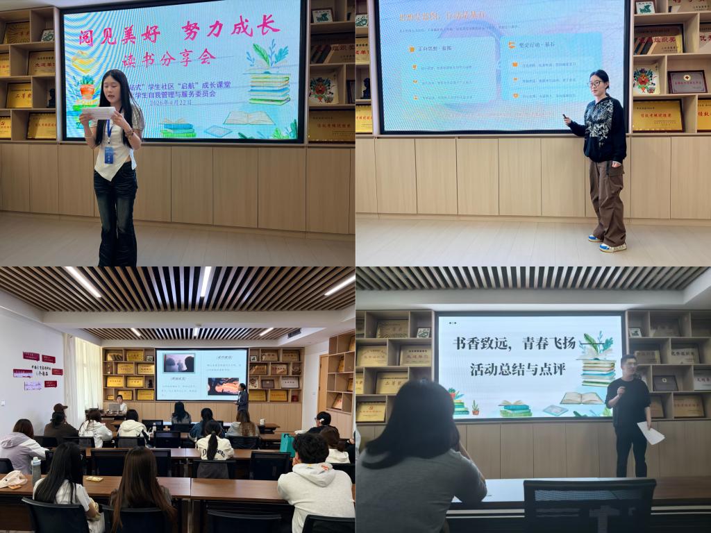 暮春四月,书香漫卷。为倡导沉浸式深度阅读,促进思想交流与文化碰撞,一场以阅读为名的青春之约在校园悄然开启。4月22日下午,校大学生自我管理与服务委员会在“一站式”学生社区“启航”成长课堂成功举办“‘阅’见美好·努力成长”读书分享会。学生处相关老师及各院系学生代表参与了本次活动。